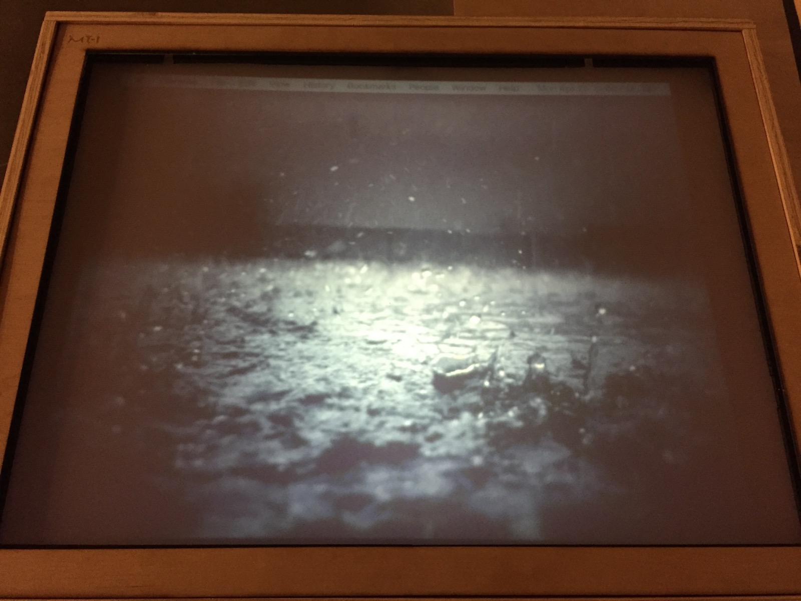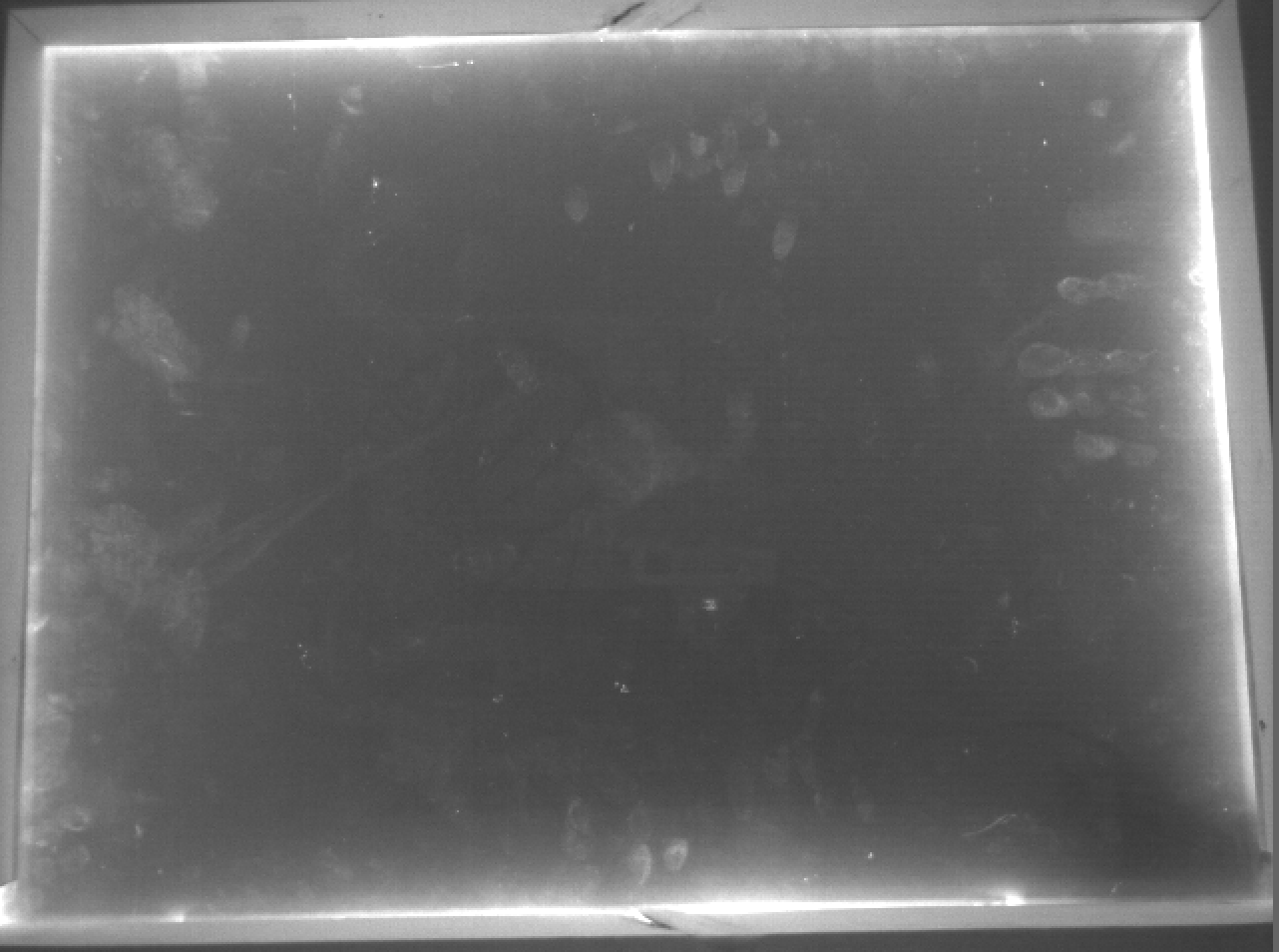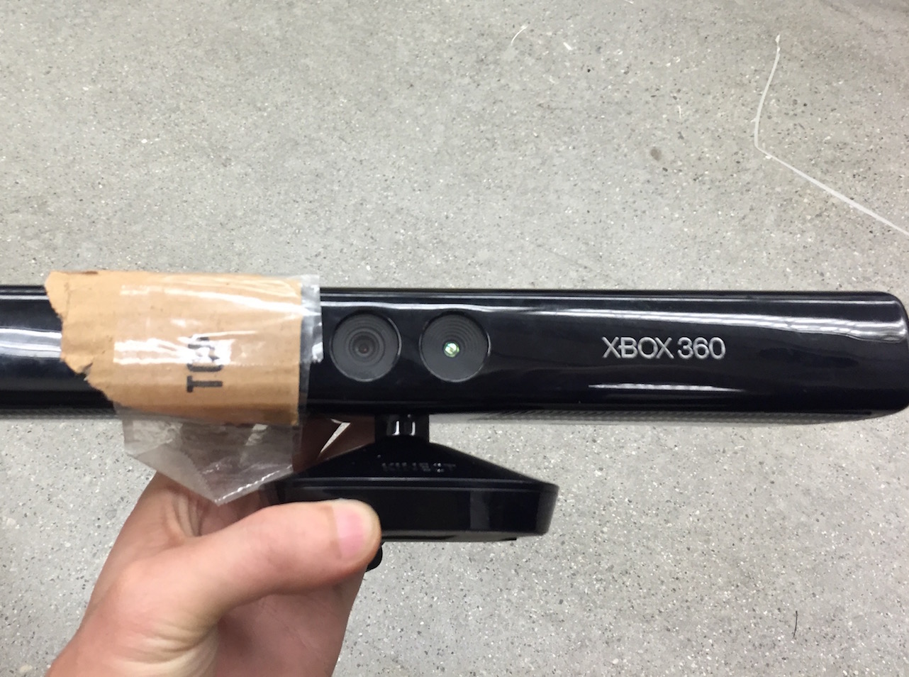 We use Kinect as an IR camera here. Kinect itself has an IR LED array that projects IR point clouds, which will interfere with the nicely diffused IR light comes out from the IR LED strips, so we need to block that LED array. The image bellow shows the Kinect with LED array blocked, and the Kinect’s views with LED blocked and unblocked.