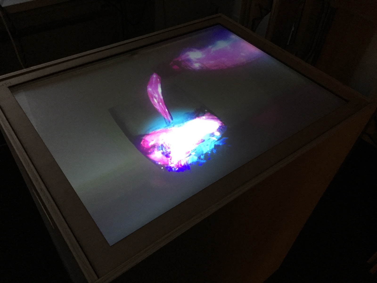 Magic Table is aiming for creating an easy-to-use prototype platform for tabletop interaction. It can sense multiple touch inputs as well as fiducial markers for object tracking. The user can also use speech command to interact with it. The method I chose here is called Diffused Surface Illumination (DSI). It puts the infrared(IR) LED strip on the side of the acrylic to illuminate the whole surface; therefore, the IR camera underneath can see the surface clearly without being affect by the projection on the surface.